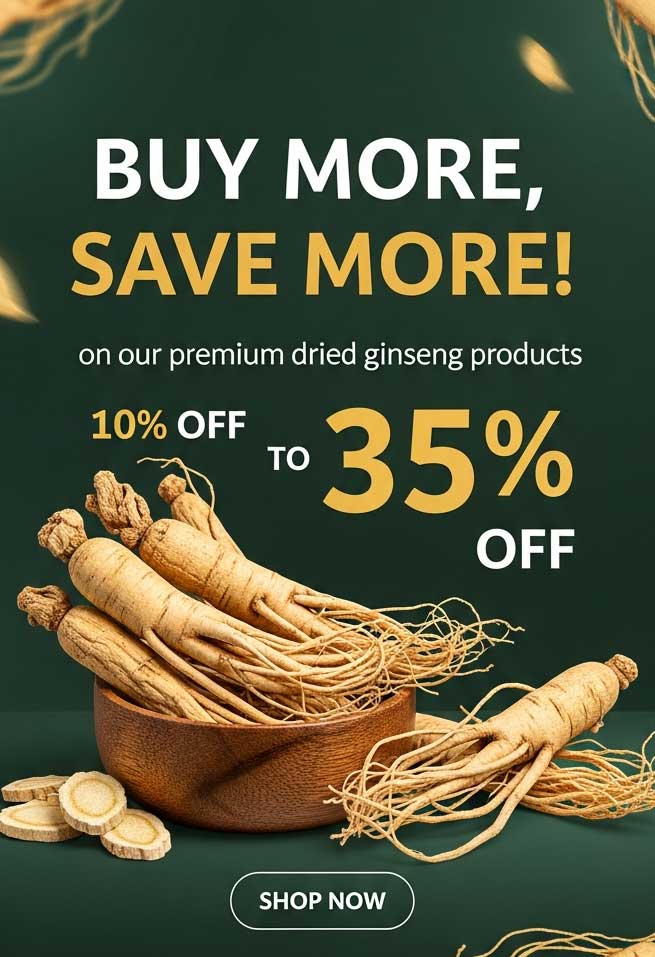 • Orders $400+ (before discount): Receive a FREE 4oz #406 Premium Large Ginseng Slices